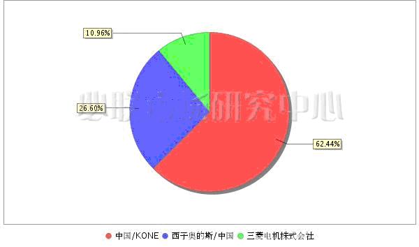 2011年1季度,我國電梯國際招標(biāo)市場的中標(biāo)制造商有3家,中國/KONE最多,占62.44%的最大市場份額,西子奧的斯/中國緊隨其后,占比26.60%;三菱電機(jī)株式會(huì)社雖然一直表現(xiàn)良好,但1季度只占到10.96%。