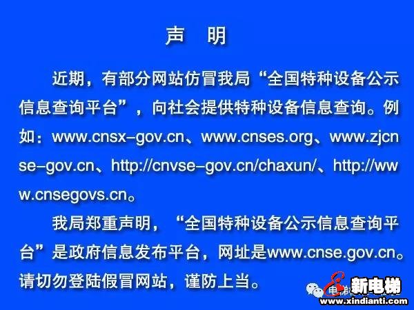 目前,國家正在極力推行高質(zhì)量發(fā)展,電梯作為實體制造業(yè)的一個種類,同樣需要走高質(zhì)量發(fā)展路線。所謂“提高電梯本質(zhì)安全”,大抵莫過如此。國家市場監(jiān)管總局作為產(chǎn)品質(zhì)量的主管部門,對于一系列違法行為當然義不容辭的予以堅決打擊。近年來,總局特設局三番五次在其官網(wǎng)首頁置頂刊登聲明,望廣大特種設備相關市場主體周知。