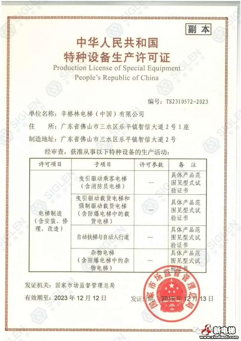 辛格林電梯喜獲國家A1級電梯生產(chǎn)資質(zhì)