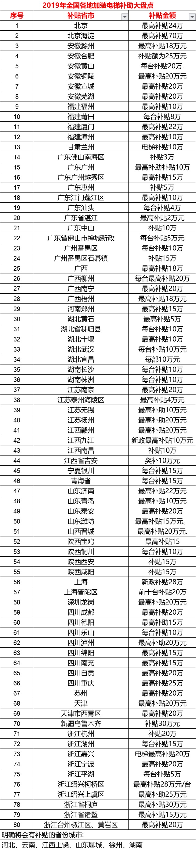 收藏:2019年全國各地加裝電梯補貼政策盤點