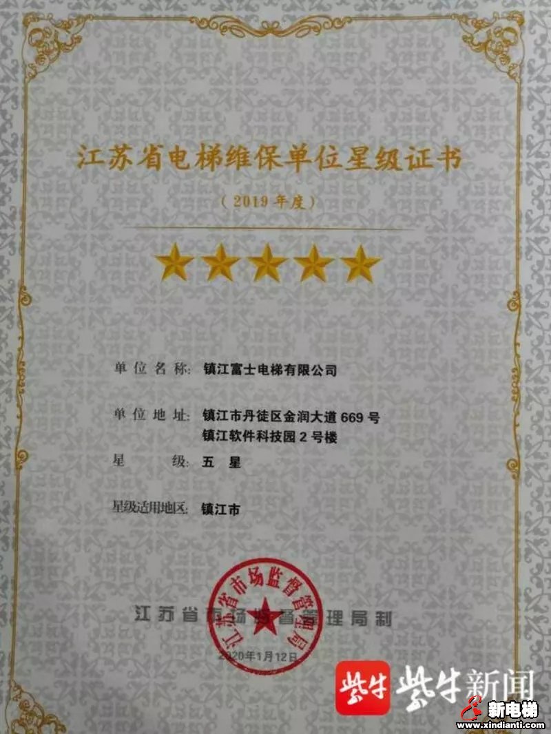 突破!江蘇省鎮(zhèn)江產(chǎn)生首家五星級(jí)電梯維保單位