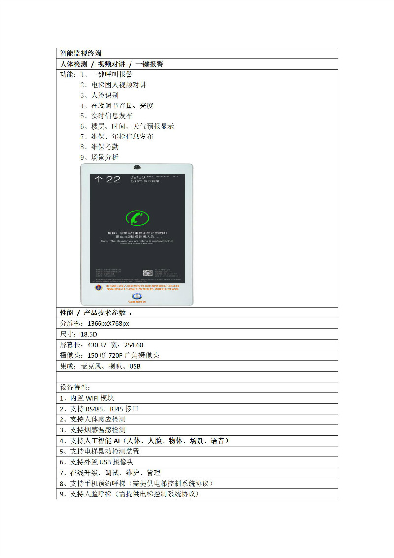 該項目主要設備中智能監(jiān)視終端支持人工智能AI(人體、人臉、物體、場景、語音),功能強大。