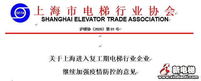上海市電梯協(xié)會發(fā)布關(guān)于復(fù)工期電梯行業(yè)企業(yè) 疫情防控的意見