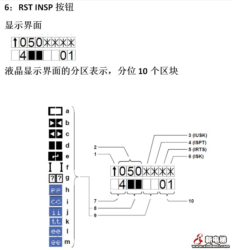 2) 當(dāng)“-”線條處于顯示位的下部分時(shí)表示電梯處于下行強(qiáng)迫換速(KSE-D)的位置