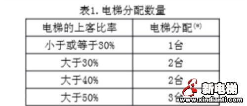 (d)最多2層可被設為餐廳層。 3.2午餐時間服務的后半段電梯的上客比率 電梯分配(*) 小于或等于30% 1臺 大于30% 2臺 大于40% 2臺 大于50% 3臺