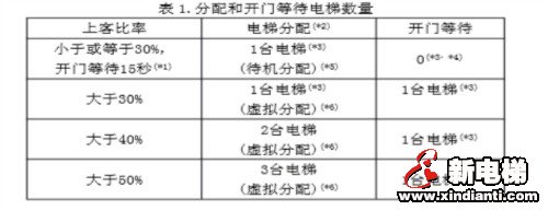 (a)分配到主層站 分配電梯和開門等待電梯的數(shù)量根據(jù)上客的比率來調整。(表1.)