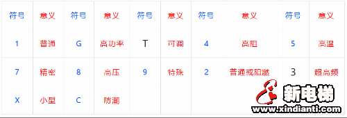 第三部分為電阻器的類別,一般用數(shù)字表示,個別類型用字母表示產(chǎn)品屬于什么類型。如下表所示為電阻器類別符號和意義。