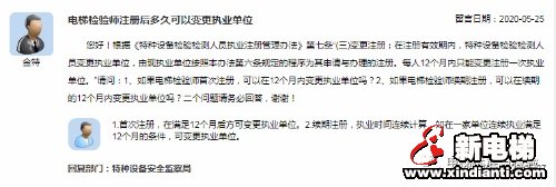 核心提示:根據《特種設備檢驗檢測人員執(zhí)業(yè)注冊管理辦法》第七條“(三)變更注冊:在注冊有效期內,特種設備檢驗檢測人員變更執(zhí)業(yè)單位,由現(xiàn)執(zhí)業(yè)單位按照本辦法第六條規(guī)定的程序為其申請與辦理的注冊。每人12個月內只能變更注冊一次執(zhí)業(yè)單位?!闭垎枺?、如果電梯檢驗師首次注冊,可以在12個月內變更執(zhí)業(yè)單位嗎?2、如果電梯檢驗師續(xù)期注冊,可以在續(xù)期的12個月內變更執(zhí)業(yè)單位嗎?