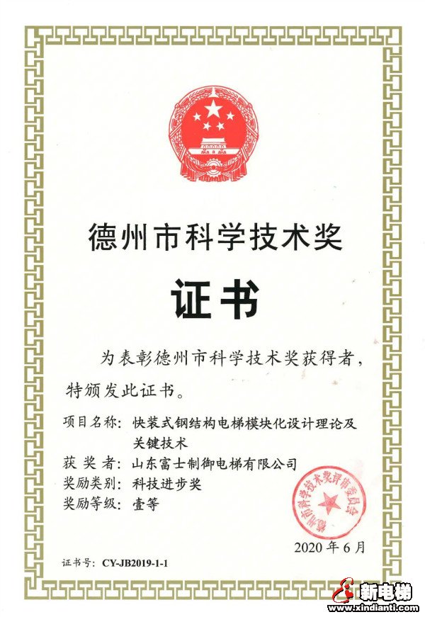 9月30日,德州市科技創(chuàng)新大會(huì)召開,表彰在全市科技創(chuàng)新工作中作出突出貢獻(xiàn)的先進(jìn)單位和個(gè)人。根據(jù)《德州市科學(xué)技術(shù)獎(jiǎng)勵(lì)辦法》規(guī)定,由富士制御電梯完成的“快裝式鋼結(jié)構(gòu)電梯模塊化設(shè)計(jì)理論及關(guān)鍵技術(shù)”榮獲德州市科技進(jìn)步獎(jiǎng)一等獎(jiǎng)!