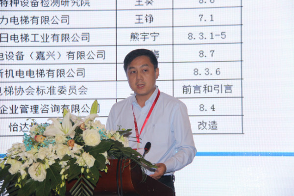 標(biāo)委會王錚發(fā)表了關(guān)于“電梯質(zhì)量管理體系要求”的主題演講。