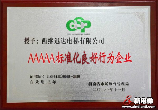 西繼迅達(dá)榮膺AAAAA級(jí)標(biāo)準(zhǔn)化良好行為企業(yè)