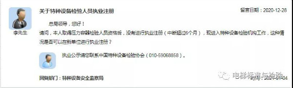 【總局回復(fù)】執(zhí)業(yè)公示請(qǐng)您聯(lián)系中國(guó)特種設(shè)備檢驗(yàn)協(xié)會(huì)(010-59068858)。