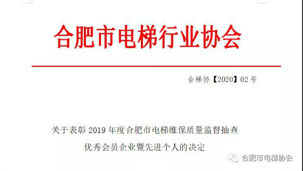關(guān)于表彰2019年度合肥市電梯維保質(zhì)量監(jiān)督抽查 優(yōu)秀會(huì)員企業(yè)暨先進(jìn)個(gè)人的決定