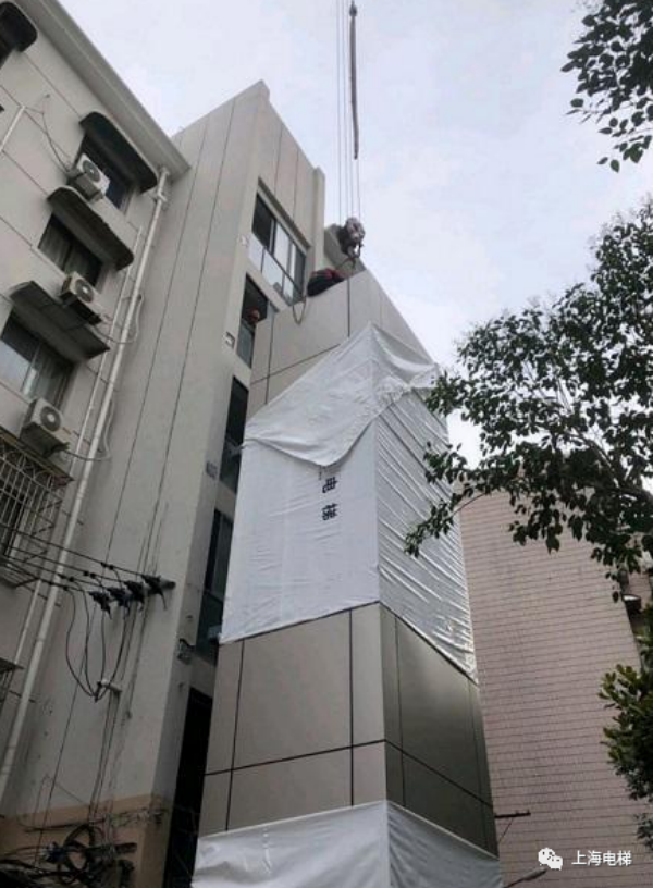 上海首臺(tái)整體式裝配吊裝加裝電梯用了近5個(gè)月
