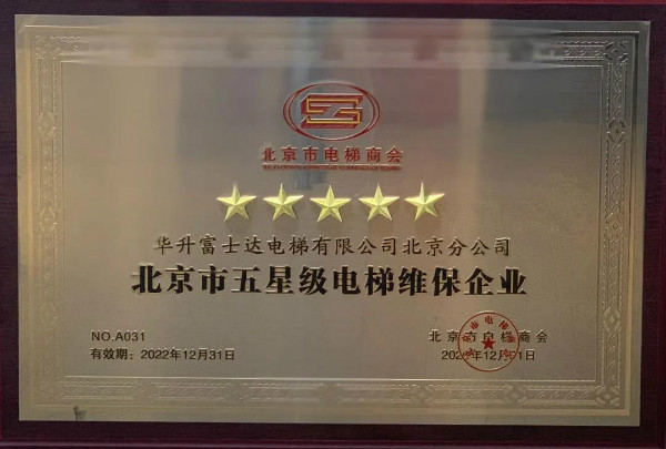 華升富士達(dá)電梯北京分公司榮獲北京市五星級(jí)電梯維保企業(yè)!