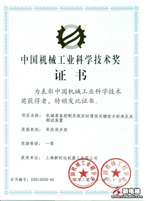 新時(shí)達(dá)機(jī)械裝備控制系統(tǒng)項(xiàng)目丨獲得中國機(jī)械工業(yè)科學(xué)技術(shù)獎(jiǎng)一等獎(jiǎng)