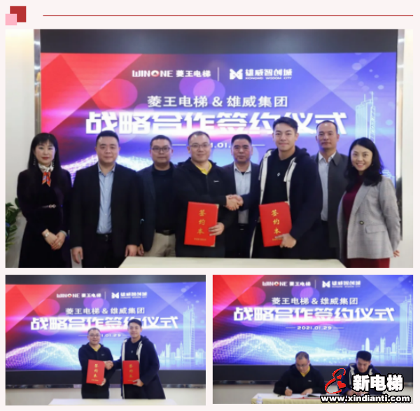 1月29日,菱王電梯與雄盈集團在佛山獅山總部舉行戰(zhàn)略合作簽約儀式。菱王電梯總經理謝建與雄盈集團總經理梁芷鋒雙方簽署戰(zhàn)略合作協(xié)議。