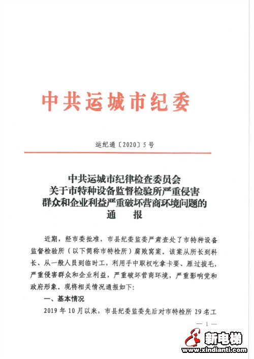 核心提示:關(guān)于市特種設(shè)備監(jiān)督檢驗(yàn)所嚴(yán)重侵害群眾和企業(yè)利益嚴(yán)重破壞營商環(huán)境問題的通報(bào)(4)