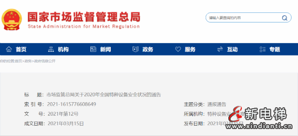 市場監(jiān)管總局關(guān)于2020年全國特種設(shè)備安全狀況的通告