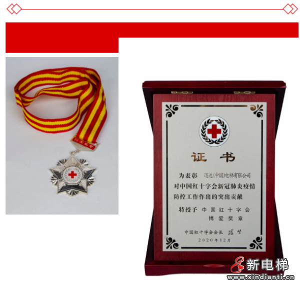 近日,迅達(dá)(中國)電梯有限公司因在疫情期間向中國紅十字會新冠肺炎疫情防控工作作出突出貢獻(xiàn)而獲表彰,被授予中國紅十字會博愛獎?wù)隆?/p>
