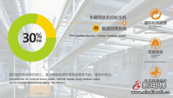 菱王自主研發(fā)生產(chǎn)的載貨電梯采用永磁同步技術(shù),避免齒輪傳動的能量消耗,達到節(jié)能降耗的效果。據(jù)國際權(quán)威部門鑒定,節(jié)能效果可達25%以上。(以2噸貨梯作為實驗基礎(chǔ)數(shù)據(jù),載重越大,節(jié)能效果越明顯)