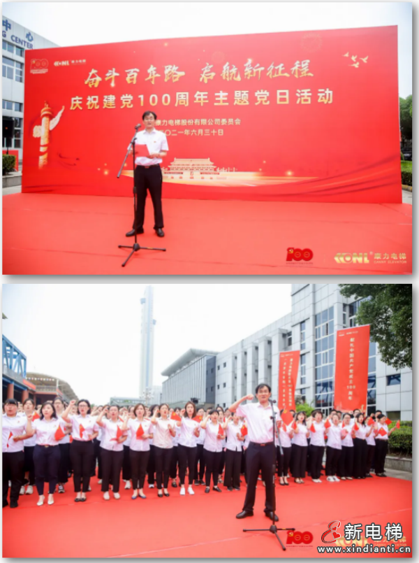 6月30日上午,慶祝建黨100周年主題黨日系列活動(dòng)在康力電梯總部產(chǎn)業(yè)園隆重舉行。汾湖高新區(qū)黨工委委員、紀(jì)工委書記鄧運(yùn)華,公司董事長(zhǎng)、黨委書記王友林,總裁朱琳昊,黨委副書記朱琳懿、孫全根,副總裁秦成松、朱瑞華、吳賢等領(lǐng)導(dǎo)和部分黨員干部職工出席儀式。