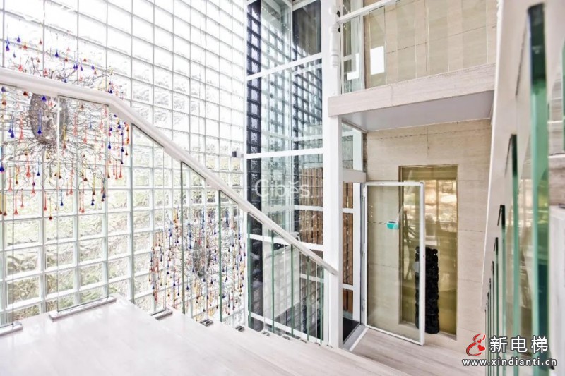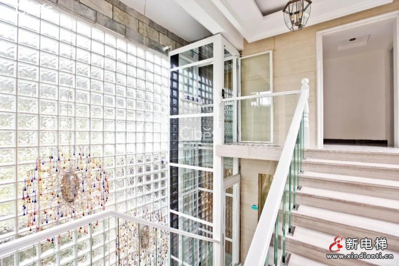 西柏思在佛山案例中,打造三層三站V80家用電梯,螺桿式驅動和獨立的井道設計,輕松地倚靠在巨大的落地窗旁,R9016純白色梯身顏色與家居周邊的設計風格洽成一體。