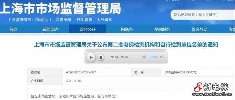 上海市市場(chǎng)監(jiān)督管理局關(guān)于公布第二批電梯檢測(cè)機(jī)構(gòu)和自行檢測(cè)單位名單的通知