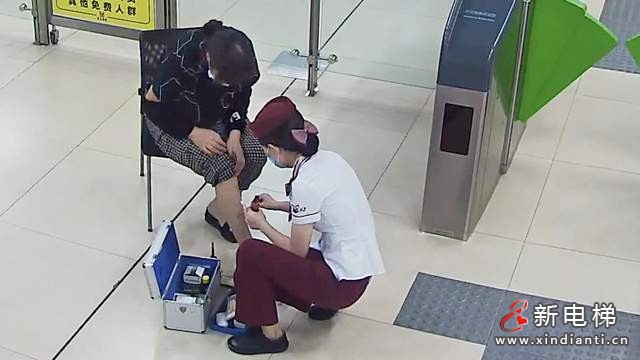 見女乘客腿部有擦傷,朱陽洋從車控室拿來小凳子讓其坐下,遞上紙巾擦掉感動的淚水,幫助其挽起褲腳,細(xì)心地用碘伏棉簽處理破皮的地方。