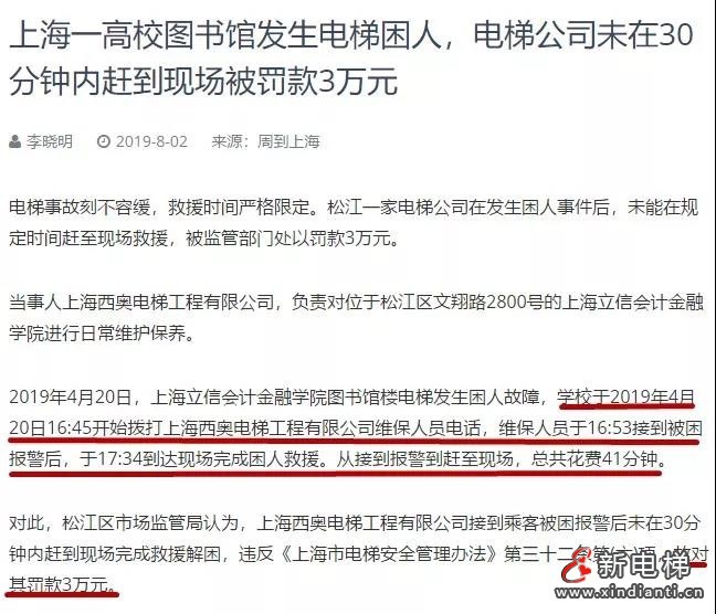 上海,17時(shí),正值交通高峰期。16:45撥打電話,16:53分接到被困報(bào)警后出發(fā),17:34到達(dá)完成困人救援。電梯公司41分鐘完成救援,被罰款3萬元,對(duì)時(shí)間的要求精確到秒計(jì)...