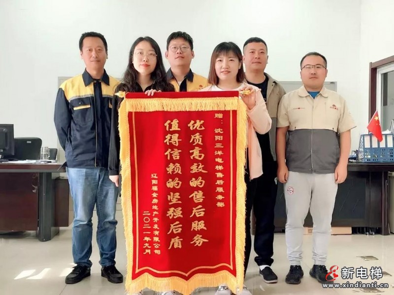 2021年9月24日,售后服務(wù)團(tuán)隊(duì)及生產(chǎn)物流班組收到了遼陽福全房地產(chǎn)開發(fā)有限公司和遼陽正德房地產(chǎn)開發(fā)有限公司送來的錦旗,贊賞了沈陽三洋電梯“言必信,行必果”的客戶服務(wù)精神。