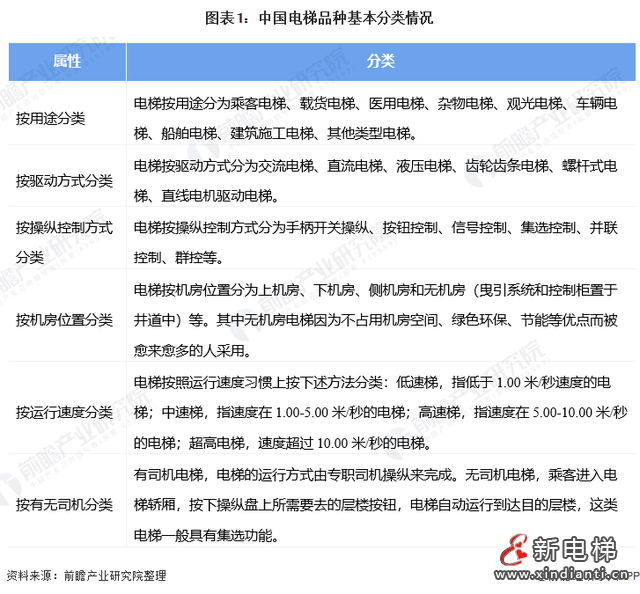 電梯制造業(yè)的中游主要是指各類電梯產(chǎn)品的制造,根據(jù)電梯的型態(tài)來劃分,我國電梯產(chǎn)品主要可劃分為載人(貨)垂直電梯、自動扶梯以及自動人行道等三種類型;根據(jù)用途來劃分,我國電梯產(chǎn)品可劃分為乘客電梯、醫(yī)用電梯、觀光電梯及家用電梯等。