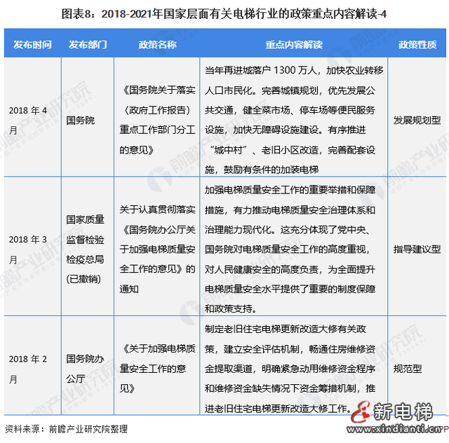 電梯對我國建筑業(yè)以及人們的生產(chǎn)、生活日常來說是必不可缺的一項(xiàng)特種設(shè)備。自2018年起,我國出臺了各項(xiàng)政策推動了中國電梯行業(yè)的蓬勃發(fā)展。