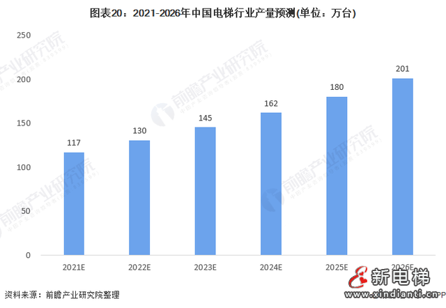 隨著我國經(jīng)濟(jì)持續(xù)快速增長、城市化快速推進(jìn)、人民生活水平提高、人口老齡化等因素的推動,我國電梯行業(yè)也呈快速發(fā)展態(tài)勢。2010-2020年,我國電梯產(chǎn)量的復(fù)合增長率約為11.4%,前瞻預(yù)計(jì),未來我國電梯產(chǎn)量將繼續(xù)保持高速增長,到2026年,我國電梯新增量將超過201萬臺。