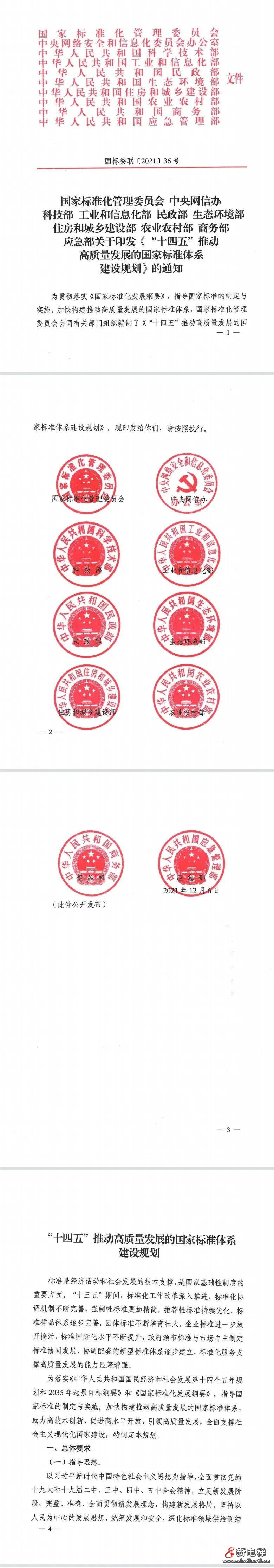 核心提示:近日,國家標準化管理委員會、中央網(wǎng)信辦、科技部、商務部等10部委印發(fā)《“十四五”推動高質(zhì)量發(fā)展的國家標準體系建設規(guī)劃》。