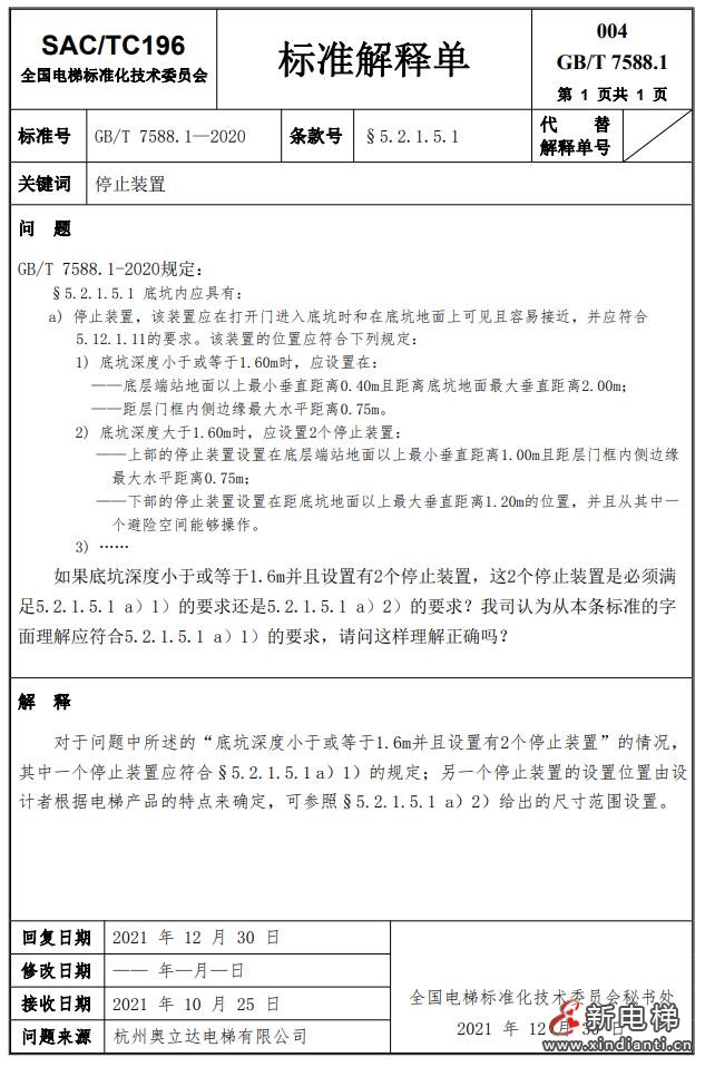 2021-12-31 來源:全國電梯標(biāo)準(zhǔn)化技術(shù)委員會(huì)作者:admin 瀏覽數(shù):8929 新電梯網(wǎng)