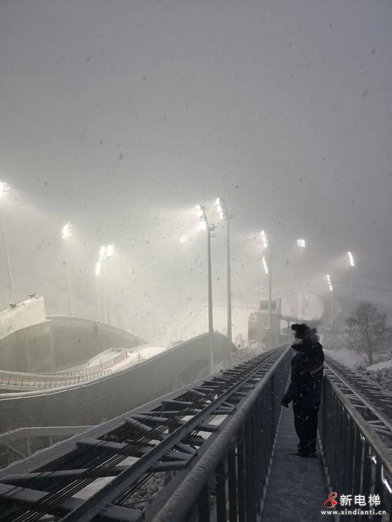 上周末,崇禮賽區(qū)遭遇大雪天氣。為保證國家跳臺滑雪中心的萊茵電梯正常運行,保障冬奧賽事的順利進行,萊茵保障團隊24小時排班,不間隔地進行人工吹雪工作??芍^是下雪不停,吹雪不止。