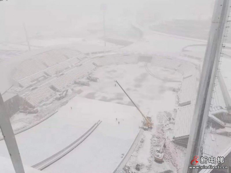 電梯及鋼構(gòu)的主體施工從2020年底開始,到2021年4月份基本完成,主要的施工都是在低溫露天的環(huán)境下,工人們頂著寒風和冰雪,付出了極大的艱辛。