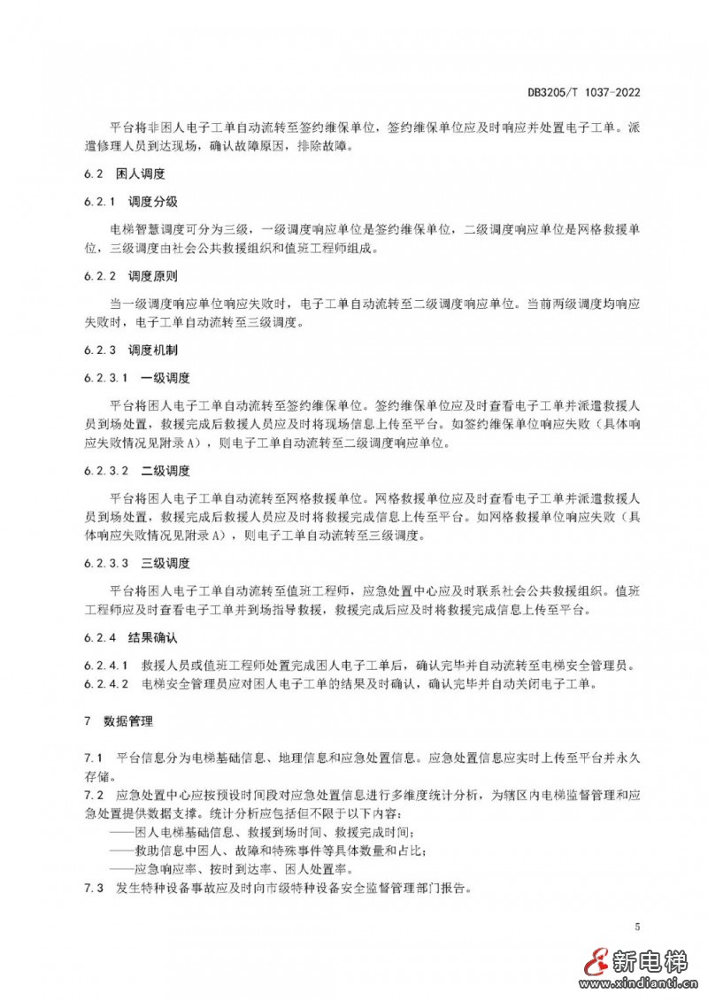 蘇州市市場(chǎng)監(jiān)督管理局發(fā)布蘇州市地方標(biāo)準(zhǔn)《電梯應(yīng)急處置智慧調(diào)度工作規(guī)范》2022年第1號(hào)(總第13號(hào))。采用智慧調(diào)度,現(xiàn)代通信及信息化技術(shù),在遇到電梯困人時(shí),通過電梯統(tǒng)一應(yīng)急救援標(biāo)識(shí)中二維碼掃碼、登錄手機(jī)APP、撥打96333應(yīng)急專線、觸發(fā)電梯“一鍵呼“裝置等方式求助,平臺(tái)生成電子工單并自動(dòng)流轉(zhuǎn)、自動(dòng)響應(yīng)的過程。電梯救援人員及時(shí)響應(yīng)流轉(zhuǎn)工單,處置,最后將救援相關(guān)信息上傳平臺(tái)。