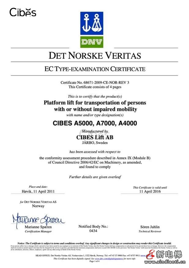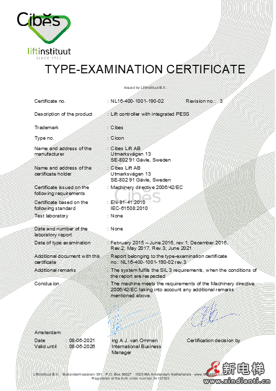 繼DNV認證后,集團產品升級,認證由權威認證機構-荷蘭Liftinstituut 認證及發(fā)行的型式試驗證書。