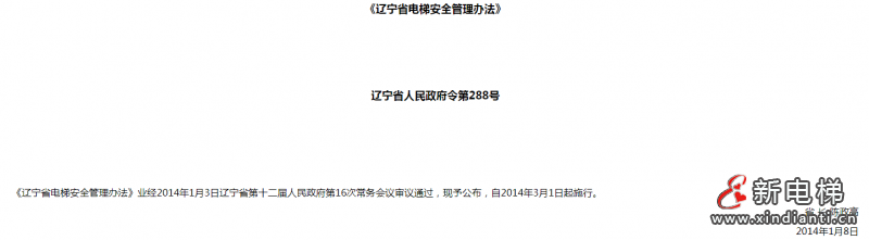 《遼寧省電梯安全管理辦法》(全文)遼寧省人民政府令第288號(hào)