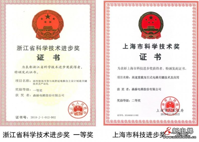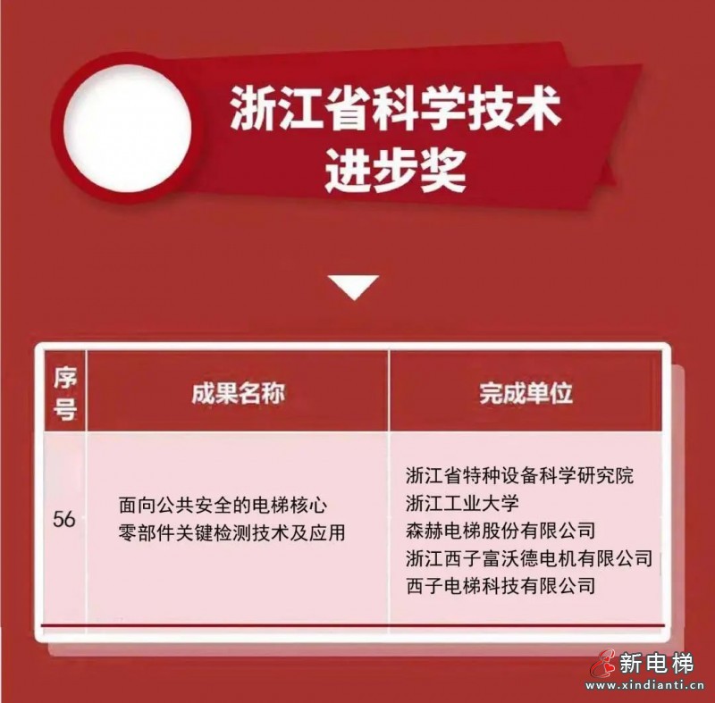喜訊|森赫電梯榮獲浙江省科學技術進步獎