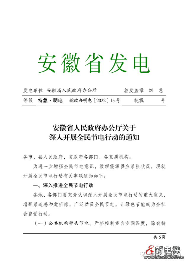 安徽:深入開展全民節(jié)電行動(dòng),行政機(jī)關(guān)3層樓以下原則上停開電梯