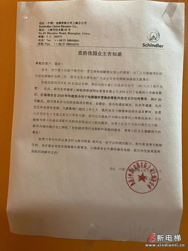 迅達(dá)電梯負(fù)責(zé)人稱:目前36部電梯的日常維保服務(wù)按國(guó)家對(duì)電梯這一特種設(shè)備的規(guī)定,該有的兩周、月度、季度、半年度之類的日常維保仍然保有。電梯零配件維修更換,金額超過(guò)2000元的,需通過(guò)業(yè)委會(huì)同意,由維修基金分?jǐn)?。因業(yè)委會(huì)換屆選舉,新的業(yè)委會(huì)負(fù)責(zé)人對(duì)此前的費(fèi)用不認(rèn)可,目前已申請(qǐng)?jiān)V訟。這也是迅達(dá)電梯被拖欠20多萬(wàn)元的緣由。