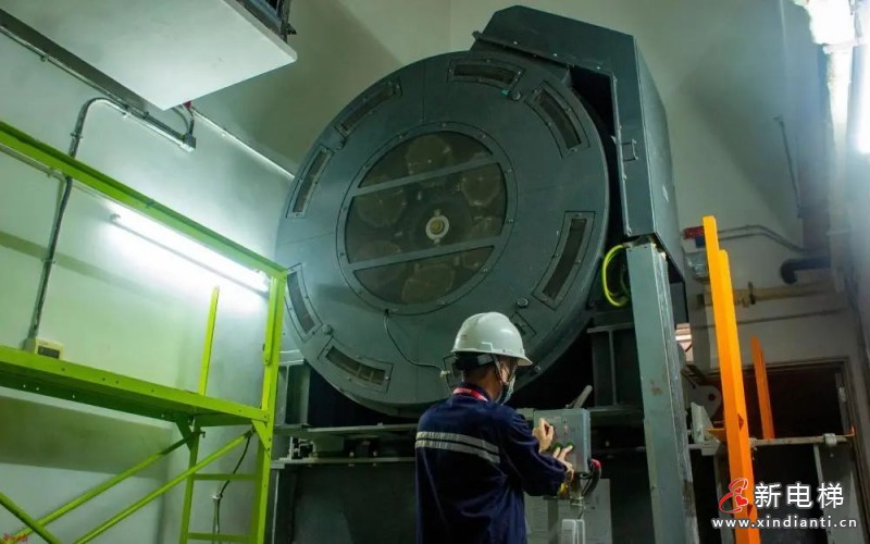 跟普通電梯不同,高速電梯的控制柜、主機(jī)、限速器分別位于不同樓層的機(jī)房,以這臺超高速電梯為例,三個機(jī)房相隔兩三個樓層,檢驗(yàn)人員進(jìn)行檢驗(yàn)時,同時分別處于不同的機(jī)房里,要求做到及時溝通、默契配合。
