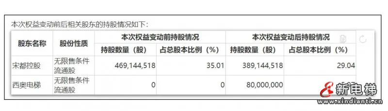 宋都控股向西奧電梯轉(zhuǎn)讓公司5.97%股份