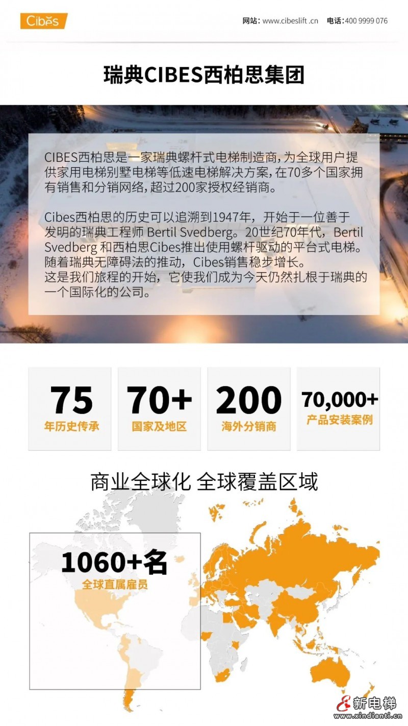 “西柏思”、“Cibes”均在中國國內有注冊商標,西柏思公司總部位于瑞典,中國嘉興工廠2020年下半年開始投產,Cibes西柏思別墅電梯自2013年進入中國直銷以來,深受別墅業(yè)主歡迎并認可,安裝客戶遍布全國各地。