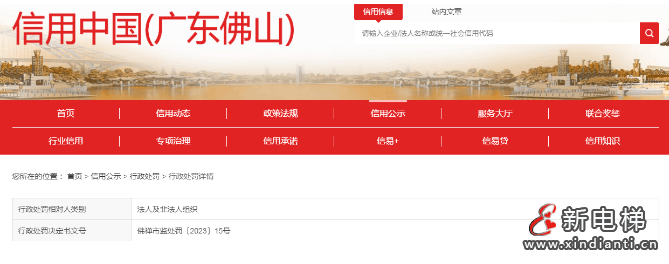 佛山市東勁樓宇設(shè)備工程有限公司未真實記錄電梯維護保養(yǎng)情況被處罰