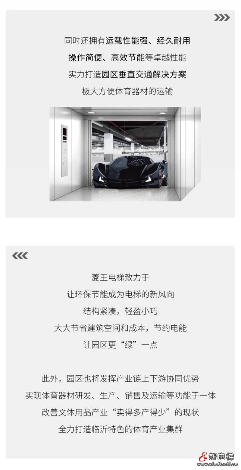 當(dāng)前位置:首頁>電梯資訊 >電梯企業(yè)Enterprises>山東省市重點(diǎn)項(xiàng)目!臨沂首個(gè)體育智造產(chǎn)業(yè)園用菱王