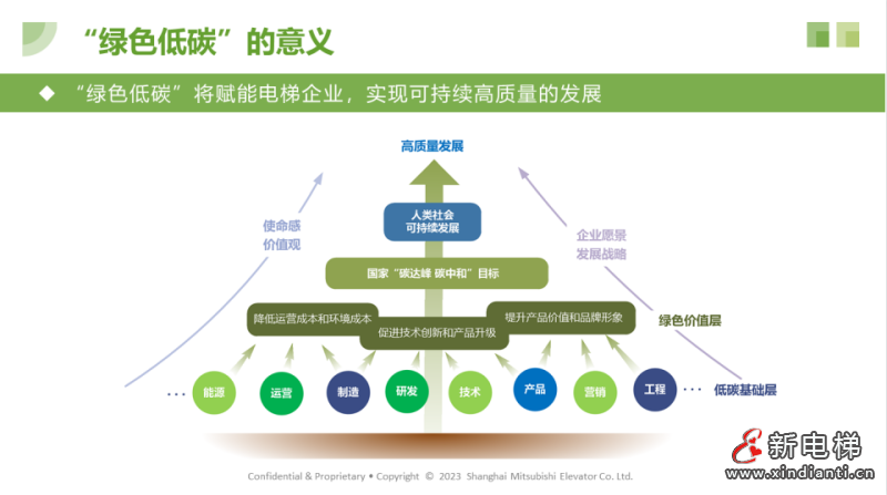 上海三菱電梯有限公司馬袆煒技術部長助理就“綠色低碳賦能高質(zhì)量發(fā)展” 這一會議主題發(fā)表了自己的見解和倡議。